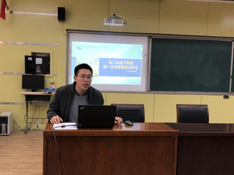 首先,高二年级副主任刘孝兵详细的介绍了本次月考的基本情况。通过对考试成绩的数据分析,让老师们对各学科的教学质量情况有了清晰的认识,并提醒老师通过数据认真分析教育教学背后的原因,及时调整自己的教学方向、教学内容、教学方法,在接下来的教学中找准方向,有的放矢。