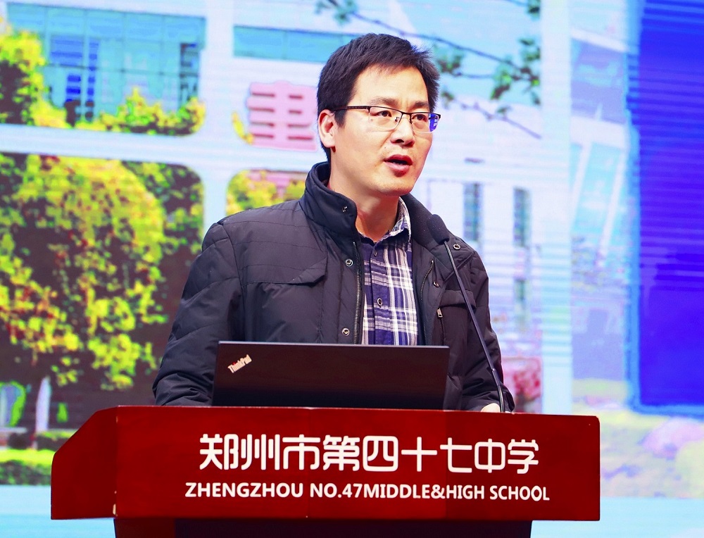 郑州47中副校长栗红涛为联考优胜学科组颁奖并合影