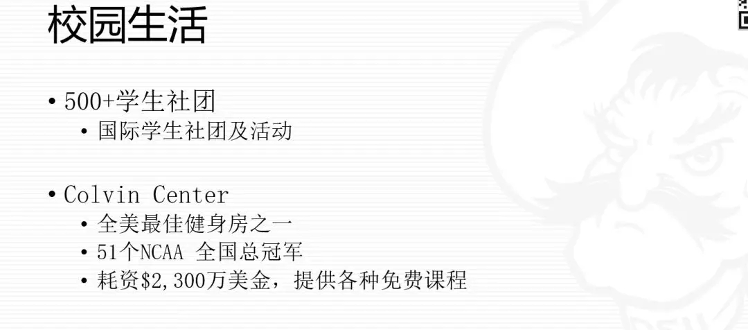 分享完学术方面,接着张老师给同学们分享了校园生活生活的方方面面。OSU在国际学生服方面做的非常完善,给国际学生提供更优质的更贴心的服务。比如在住宿方面,OSU实行了一个新的政策,让美国学生和国际学生一对一配合分宿舍,有利于国际学生更快适应语言、学习、生活等。