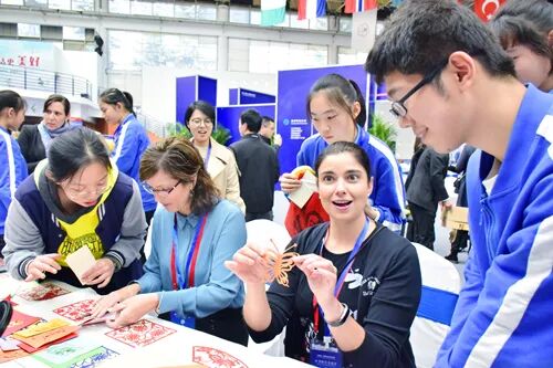 在自由交流阶段,为方便中美师生之间的交流,学校选拔了31名同学作为志愿者,担任美国校长们的随身翻译官,全程为美国校长们讲解。他们的出色表现,得到了各位校长的称赞。此外,郑州47中书法社、剪纸社、创客社团展示的学生作品也深深吸引了美方代表,学生将这些作品赠予美方代表留作纪念,深得美方校长的喜爱。