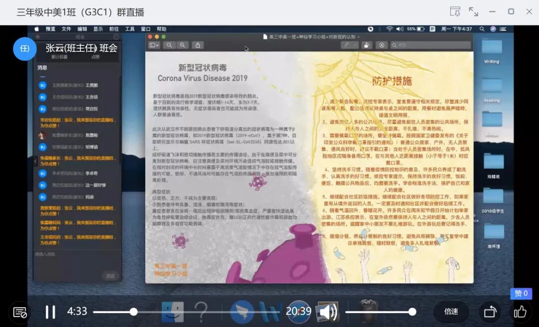 近日,在郑州市第四十七中学教育集团国际部的统一部署下,中美班&剑桥A Level班各个班级在线召开了关于《中国抗疫图鉴》学习成果展示的主题班会。会上,同学们在班主任老师的带领下,分享了抗疫图鉴的学习心得,并用图画、视频、中英文感想等多种作品形式表达对逆行英雄的敬仰、对抗疫成功的信心、对祖国强大的深切自豪感以及珍惜现在、不惧未来的奋斗决心。